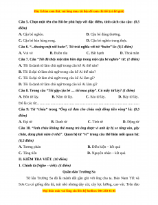 Câu 6. “...thoáng một nỗi buồn”, Từ trái nghĩa với từ “buồn” là: (0,5 điểm)