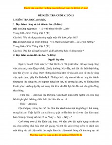 I. KIỂM TRA ĐỌC. (10 điểm)