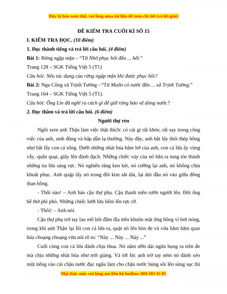 Đề thi cuối kì 1 Tiếng Việt lớp 5 năm 2023 (Đề 15)