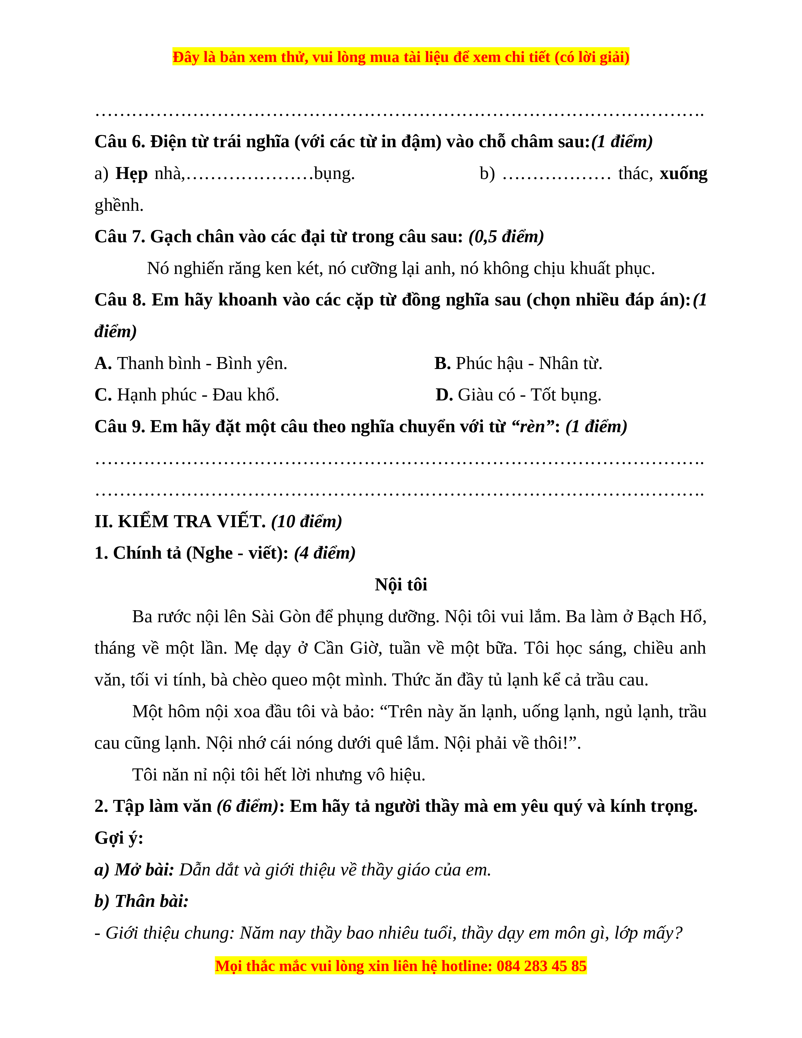 Đây là bản xem thử, vui lòng mua tài liệu để xem chi tiết (có lời giải)