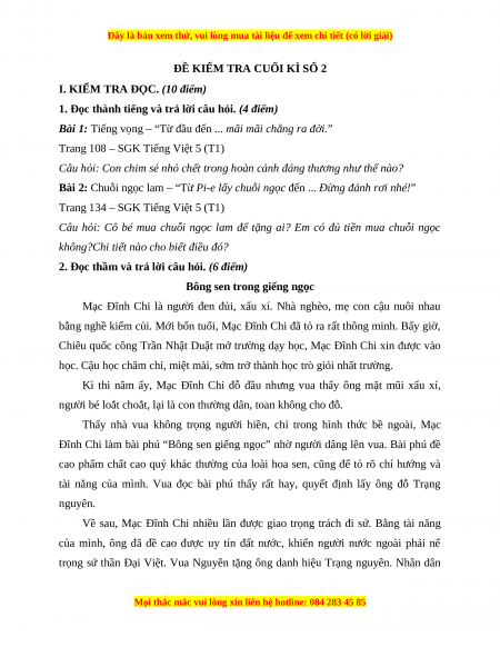 Đề thi cuối kì 1 Tiếng Việt lớp 5 năm 2023 (Đề 2)