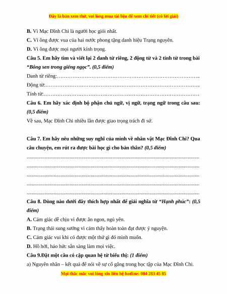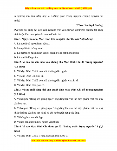 Đây là bản xem thử, vui lòng mua tài liệu để xem chi tiết (có lời giải)
