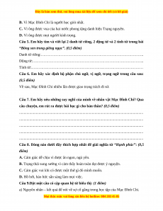 Câu 7. Em hãy nêu những suy nghĩ của mình về nhân vật Mạc Đĩnh Chi? Qua