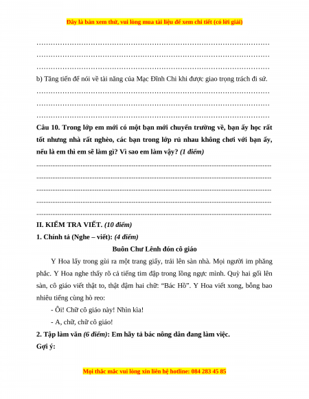 II. KIỂM TRA VIẾT. (10 điểm)