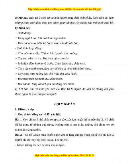 2. Tập làm văn (6 điểm): Em hãy tả bác nông dân đang làm việc. Gợi ý: