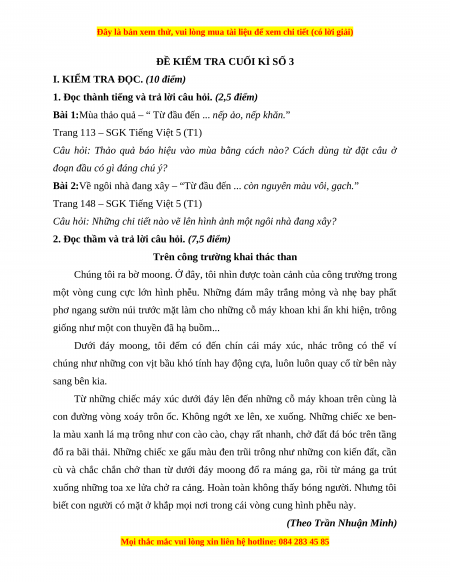 Đề thi cuối kì 1 Tiếng Việt lớp 5 năm 2023 (Đề 3)