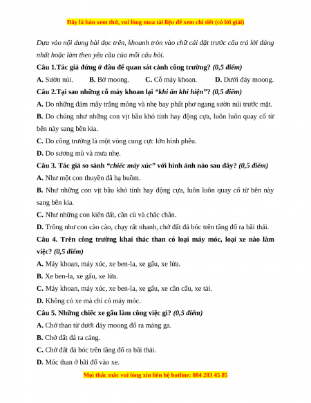 Câu 1.Tác giả đứng ở đâu để quan sát cảnh công trường? (0,5 điểm)