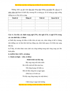 Câu 11. Em hãy xác định trạng ngữ (TN), chủ ngữ (CN), vị ngữ (VN) trong