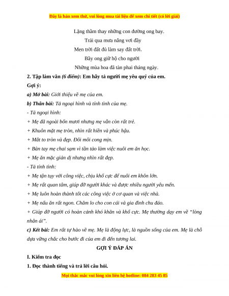 2. Tập làm văn (6 điểm): Em hãy tả người mẹ yêu quý của em.