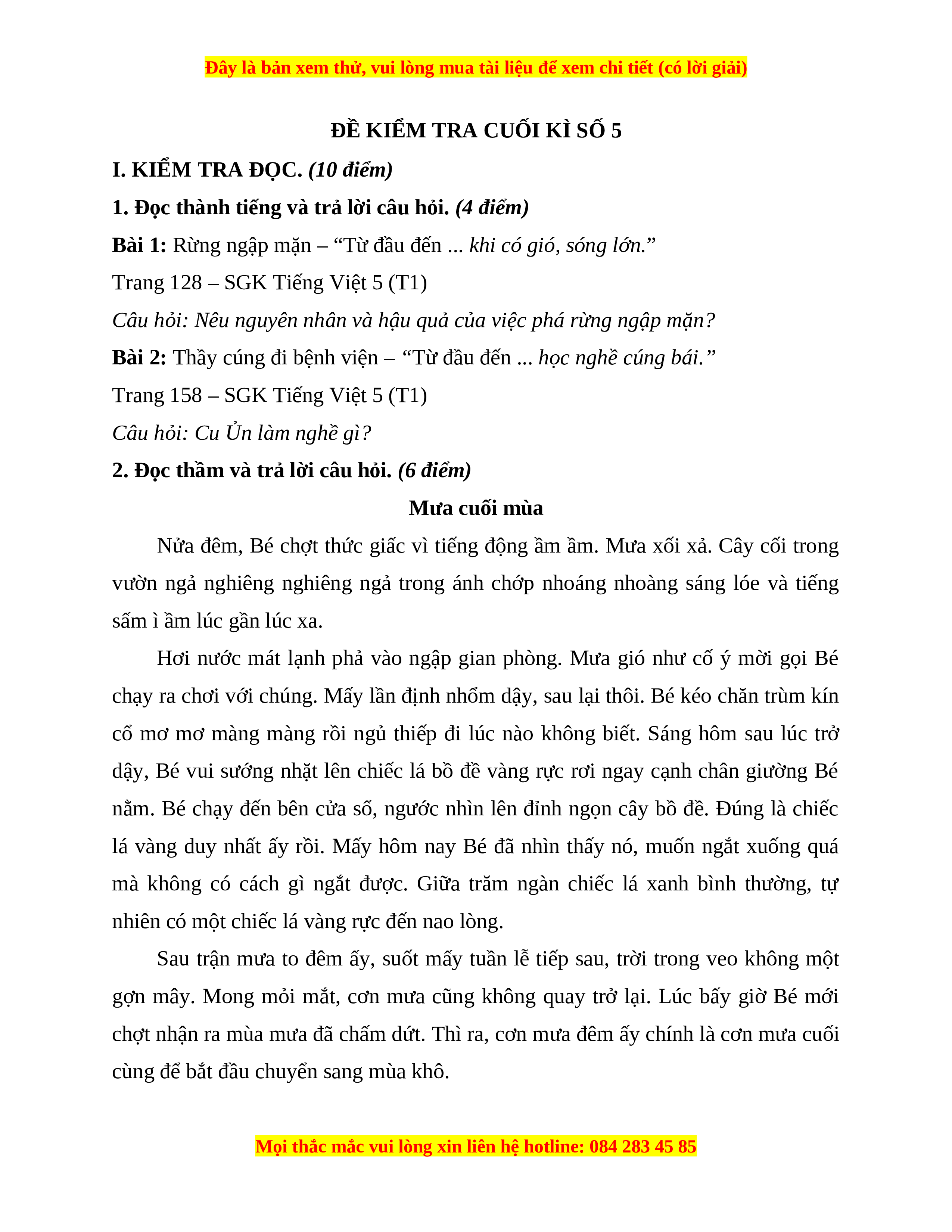 ĐỀ KIỂM TRA CUỐI KÌ SỐ 5