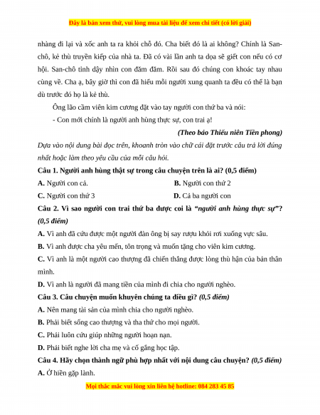 2. Đọc thầm và trả lời câu hỏi. (6 điểm) Anh hùng thực sự
