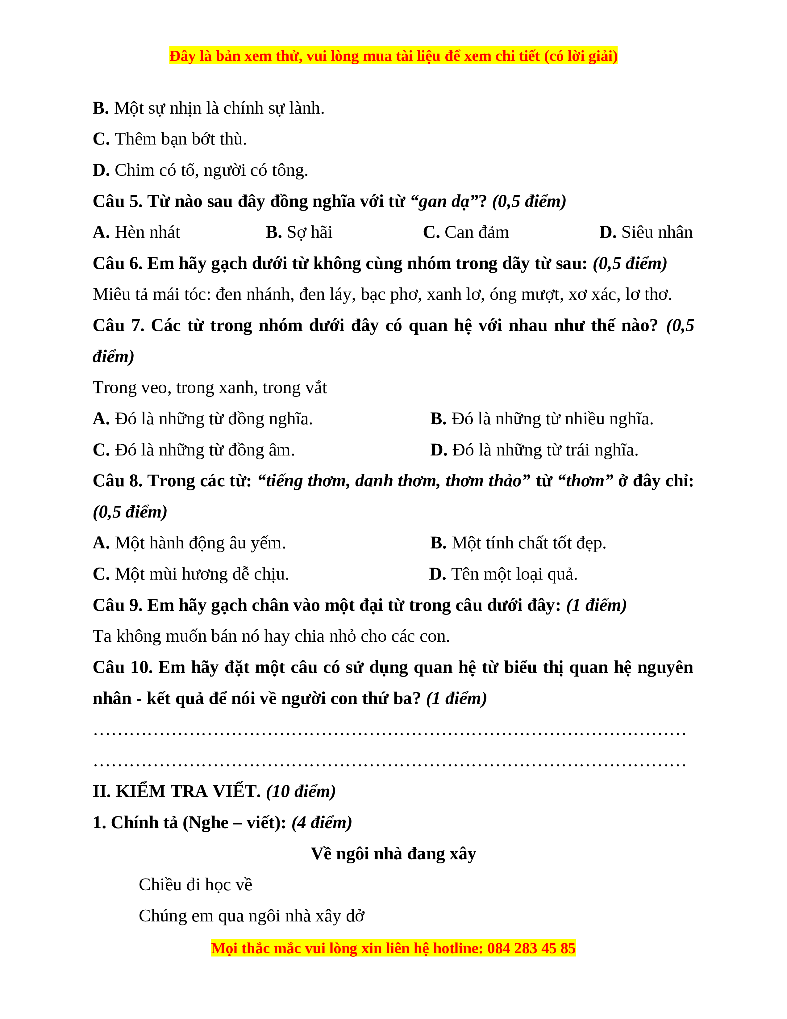 Đây là bản xem thử, vui lòng mua tài liệu để xem chi tiết (có lời giải)