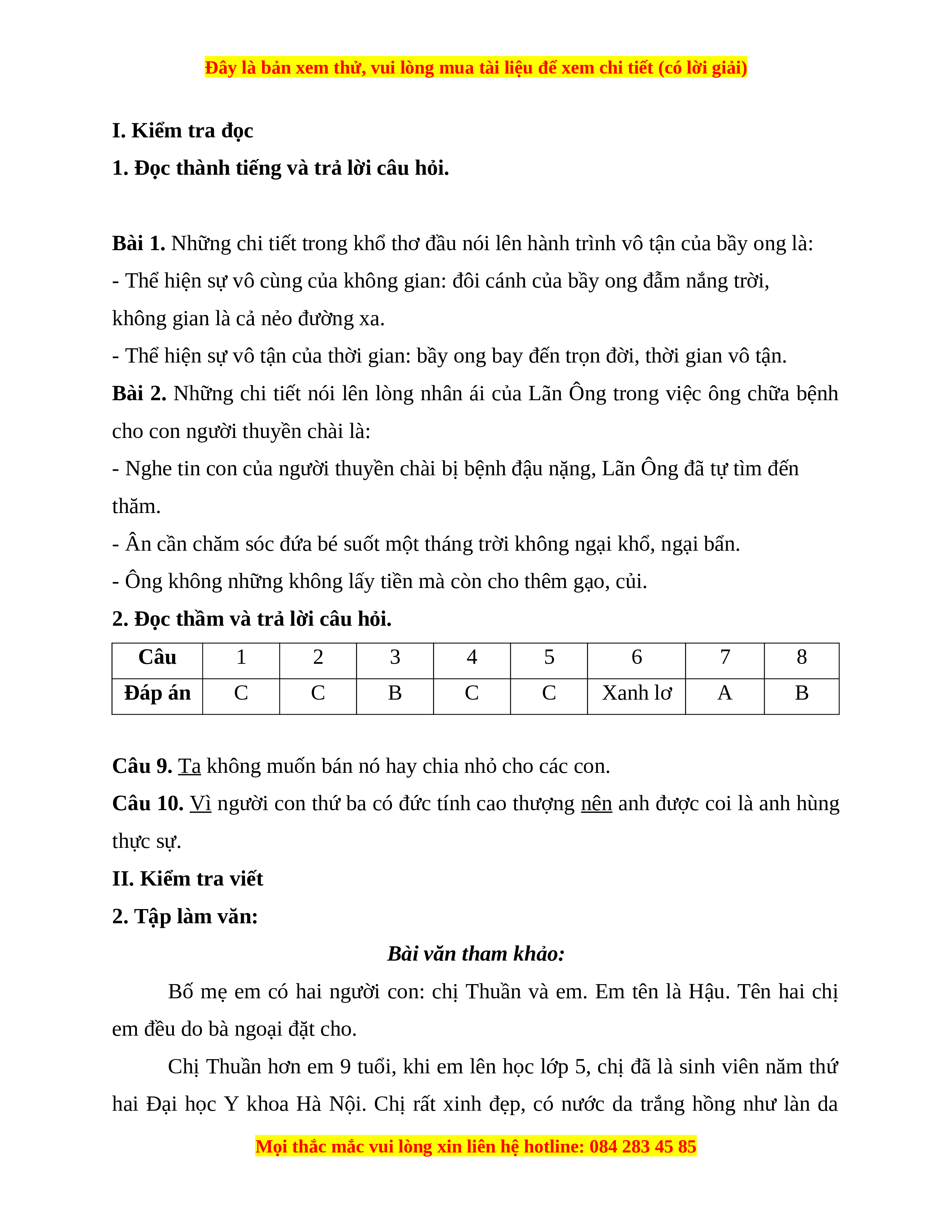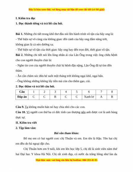 I. KIỂM TRA ĐỌC. (10 điểm)