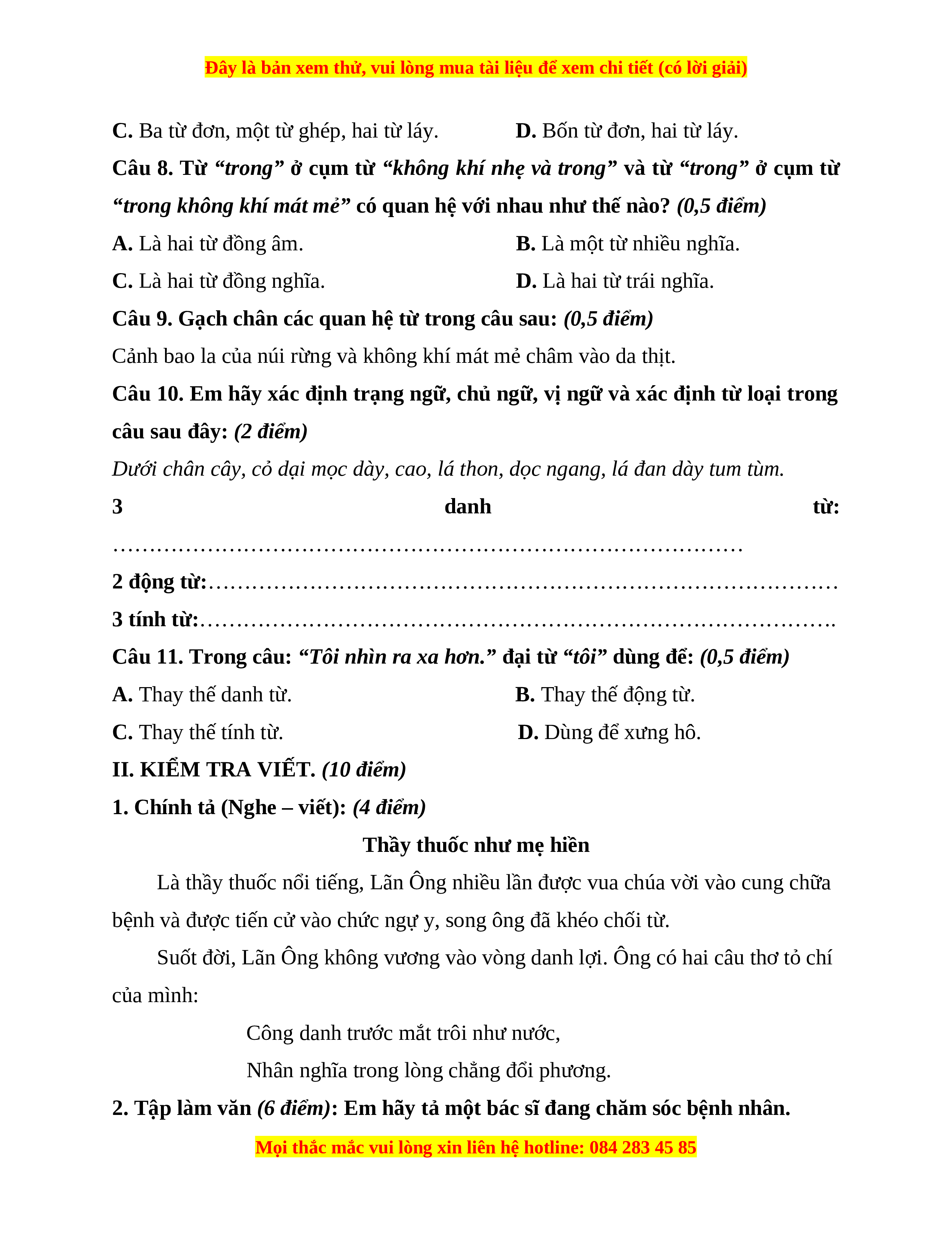 Đây là bản xem thử, vui lòng mua tài liệu để xem chi tiết (có lời giải)