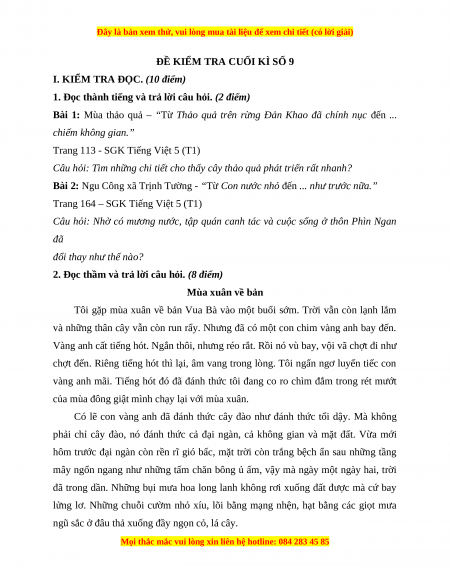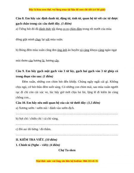 2. Đọc thầm và trả lời câu hỏi. (8 điểm) Mùa xuân về bản