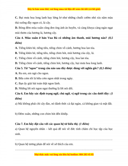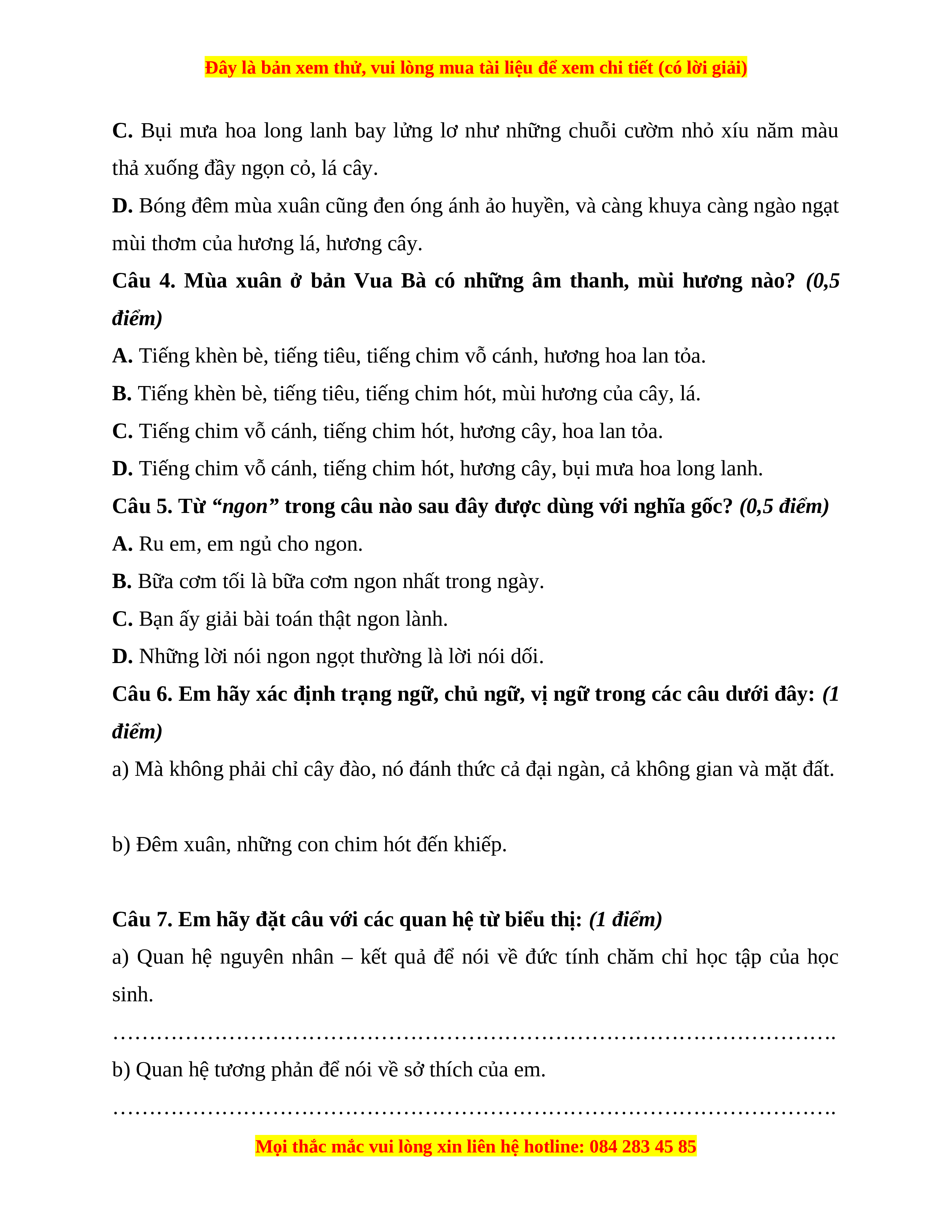 Câu 4. Mùa xuân ở bản Vua Bà có những âm thanh, mùi hương nào? (0,5 điểm)