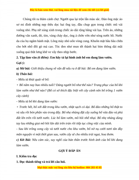 2. Tập làm văn (6 điểm): Em hãy tả lại hình ảnh bố em đang làm vườn.