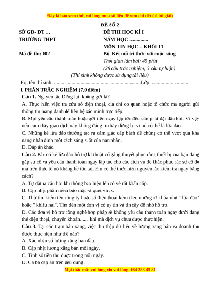 (28 câu trắc nghiệm; 3 câu tự luận)