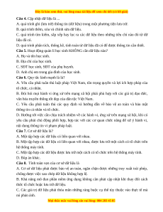 Câu 5. Hoạt động quản lí học sinh KHÔNG cần dữ liệu nào? A. Họ và tên học sinh.