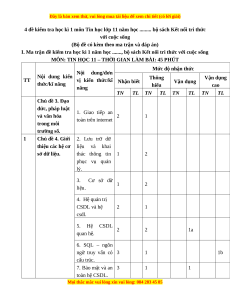thiệu các hệ cơ liệu và khai sở dữ liệu. thác thông tin 1 2 phục vụ quản lý. 3. Cơ sở dữ 1 2 liệu. 4. Hệ quản trị CSDL và hệ 2 1 csdl. 5. Hệ CSDL 2 2 1a quan hệ. 6. SQL – ngôn ngữ truy vấn có 3 1 1b cấu trúc. 7. Bảo mật và an 3 1 1 toàn hệ CSDL.
