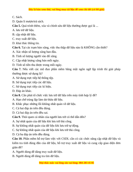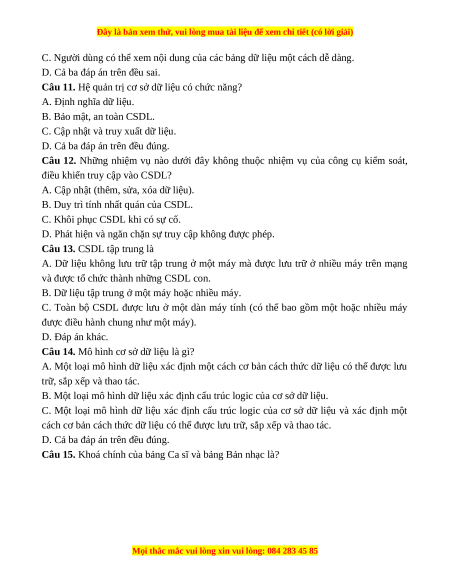 Đây là bản xem thử, vui lòng mua tài liệu để xem chi tiết (có lời giải)