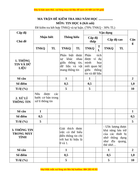 thức liên lạc phần của địa khác. chỉ thư điện tử. Số câu 1 1 1 3 Số điểm 0,5 1,0 1,0 2,0 Tỉ lệ (%) 5 10 10 20 Tổng số câu 6 6 1 1 1 1 1 17 Tổng số điểm 3,0 3,0 1,0 0,5 1,0 0,5 1,0 10 Tỉ lệ (%) 30 40 30 100
