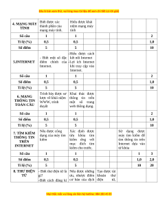 lược về khái niệm thông tin trên THÔNG TIN WWW, trình một số trang TOÀN CẦU duyệt web thông dụng. Số câu 1 1 2 Số điểm 0,5 0,5 1,0 Tỉ lệ (%) 5 5 10 Nêu được công Xác định được Sử dụng được