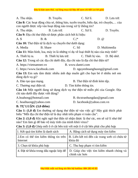 Câu 1: (1,0 đ) Em thường sử dụng thư điện tử vào việc gì? Hãy giải thích phát