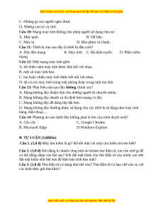Câu 10: Mạng máy tính không cho phép người sử dụng chia sẻ: A. Máy quét. B. Dữ liệu. C. Máy in. D. Bàn phím và chuột.