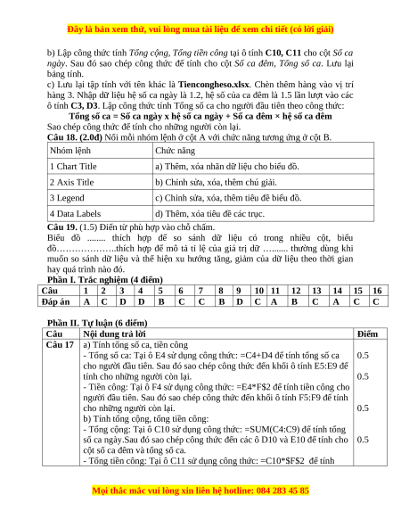 số ca ngày.Sau đó sao chép công thức đến các ô D10 và E10 để tính cho 0.5