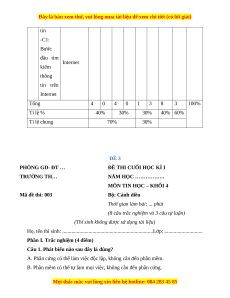 tin -C1: Bước đầu tìm Internet kiếm thông tin trên Internet Tổng 4 0 4 0 1 3 8 3 100% Tỉ lệ % 40% 30% 30% 40% 60% Tỉ lệ chung 70% 30% ĐỀ 3 PHÒNG GD- ĐT …