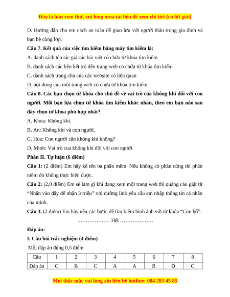Câu 6. Trên internet, những loại thông tin nào sau đây phù hợp với em?
