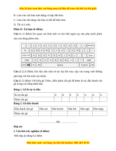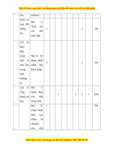 tìm Internet kiếm và Bài 5: trao đổi Thao tác thông 1 1 5% với thư tin mục, tệp CĐ D: Đạo đức, pháp Bài 6: Sử luật và dụng phần 1 1 5% văn hóa mềm khi trong được phép môi trường số CĐ E: Bài 7: Ứng Soạn thảo 1 1 1 1 25% dụng tin văn bản học tiếng Việt Bài 8: 1 5% Chèn hình ảnh, sao chép, di chuyển, xóa văn