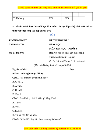 - Tailieugiaovien.com.vn giới thiệu 4 đề cuối kì 1 gồm đầy đủ ma trận và lời giải chi tiết môn Tin học lớp 4 Kết nối tri thức mới nhất năm 2023 nhằm giúp Giáo viên có thêm tài liệu tham khảo ra đề thi Tin học lớp 4.