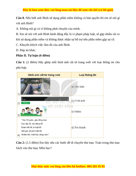 Câu 1: (2 điểm) Hãy ghép mỗi hình ảnh cắt từ trang web với loại thông tin cho