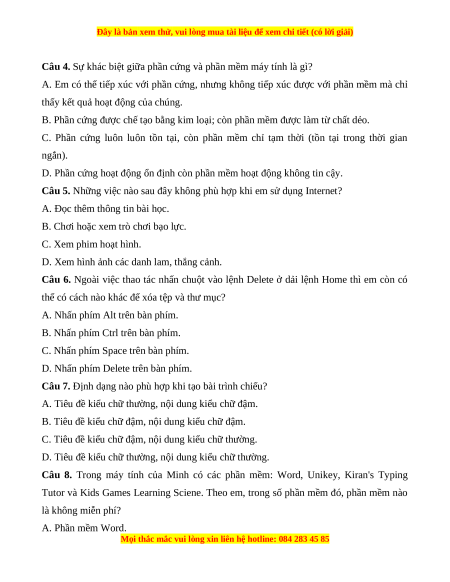Đây là bản xem thử, vui lòng mua tài liệu để xem chi tiết (có lời giải)