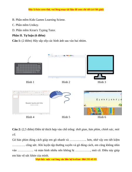 Câu 8. Trong máy tính của Minh có các phần mềm: Word, Unikey, Kiran's Typing