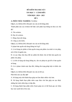 NĂM HỌC: 2024 – 2025 ĐỀ 1