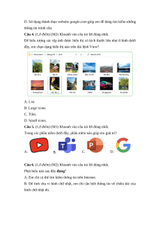đây, em chọn dạng hiển thị nào trên dải lệnh View? A. List. B. Large icons. C. Tiles. D. Small icons.