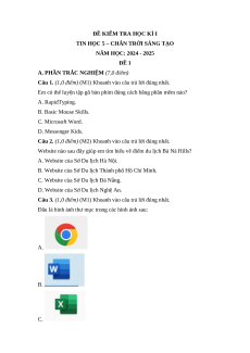 TIN HỌC 5 – CHÂN TRỜI SÁNG TẠO NĂM HỌC: 2024 - 2025 ĐỀ 1