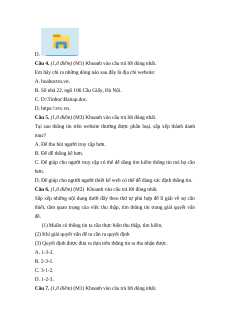 Câu 5. (1,0 điểm) (M3) Khoanh vào câu trả lời đúng nhất.