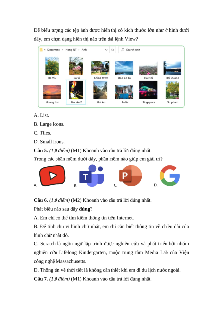 đây, em chọn dạng hiển thị nào trên dải lệnh View? A. List. B. Large icons. C. Tiles. D. Small icons.