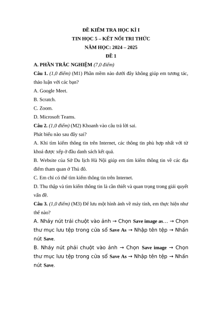 NĂM HỌC: 2024 – 2025 ĐỀ 1