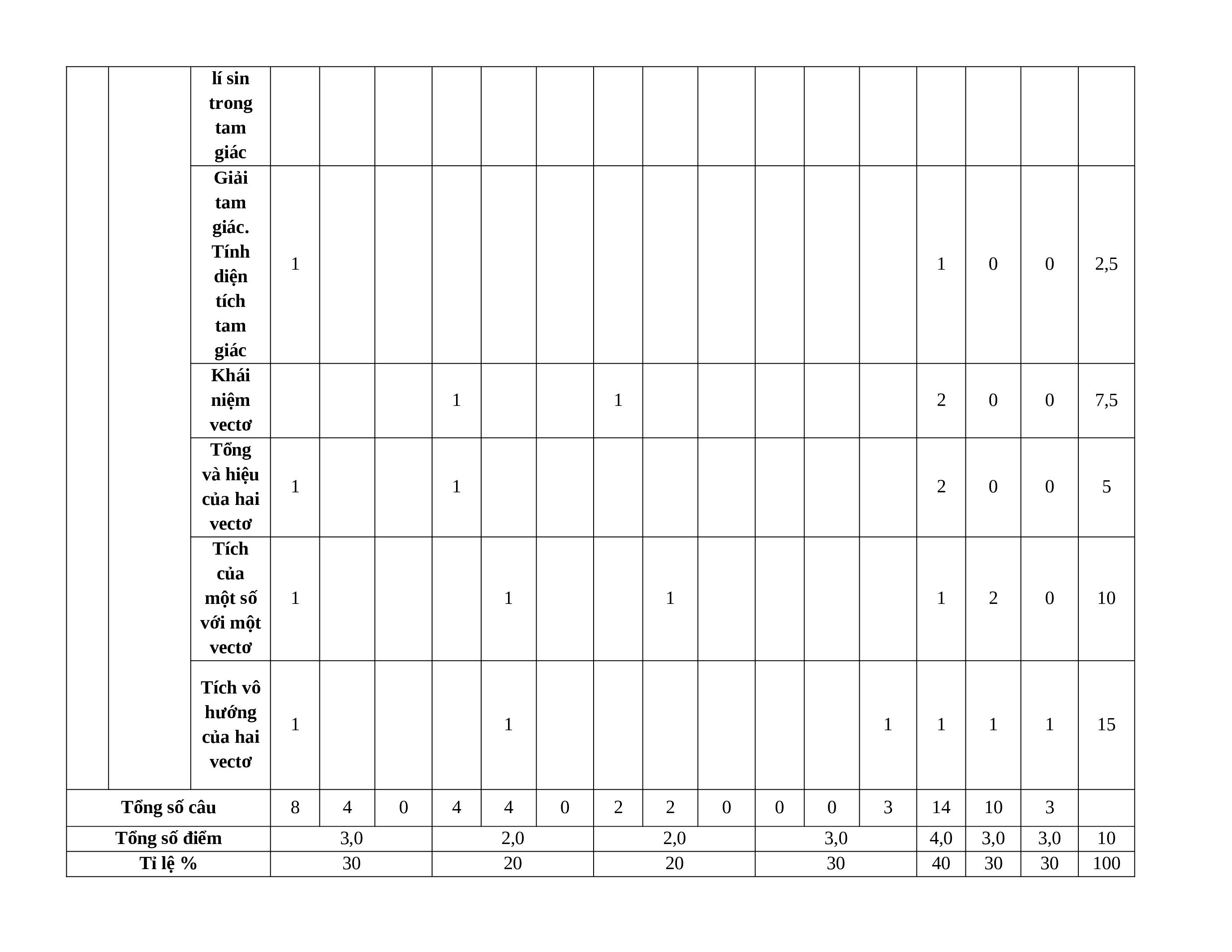 * Ma trận trên tạm thời ghi số điểm (giả định) ứng với mỗi ý hỏi của trắc nghiệm đúng sai, trên thực tế số điểm còn phụ thuộc vào số ý hỏi mà thí
