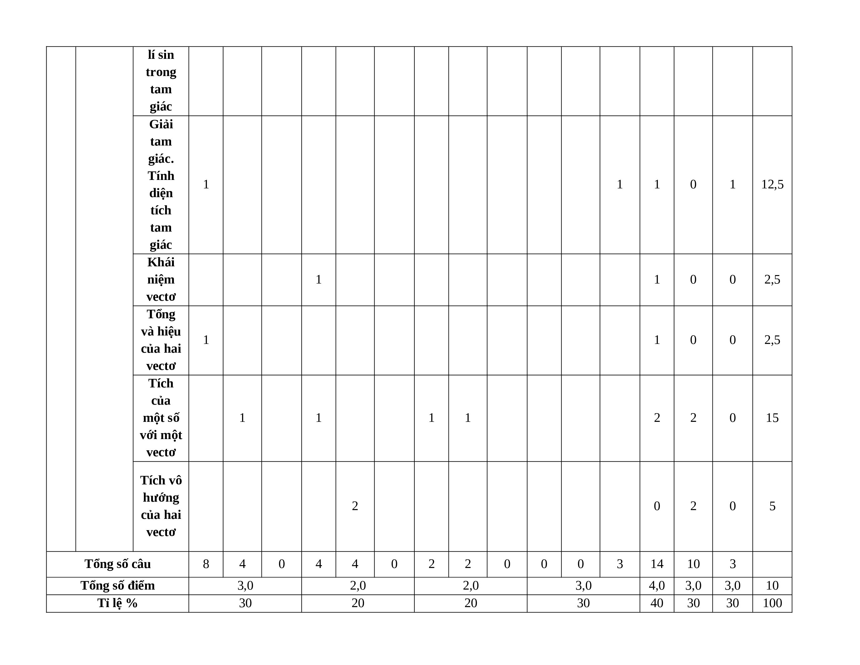 * Ma trận trên tạm thời ghi số điểm (giả định) ứng với mỗi ý hỏi của trắc nghiệm đúng sai, trên thực tế số điểm còn phụ thuộc vào số ý hỏi mà thí