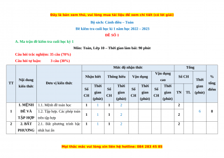 A. Ma trận đề kiểm tra cuối học kỳ 1