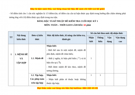 A. Ma trận đề kiểm tra cuối học kỳ 1