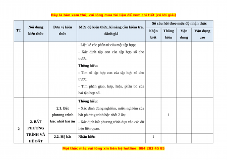 - Các câu hỏi ở cấp độ vận dụng và vận dụng cao là các câu hỏi tự luận.