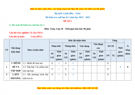 Đề kiểm tra cuối học kì 1 năm học 2022 – 2023 ĐỀ SỐ 5