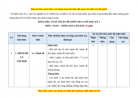 A. Ma trận đề kiểm tra cuối học kỳ 1